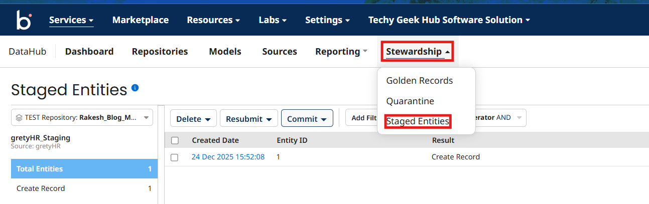 You can see the the staged entity is commited to golden record