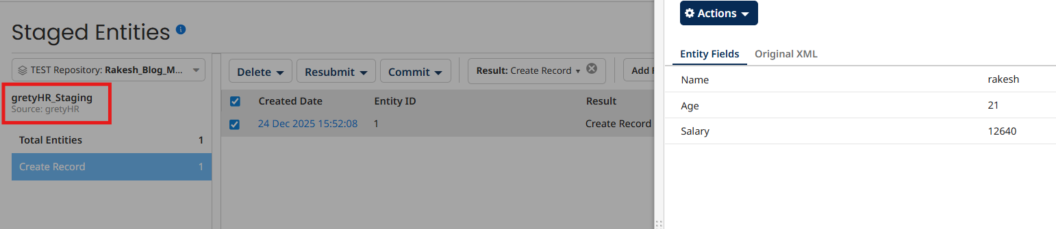 You can see the record got created in staged entities