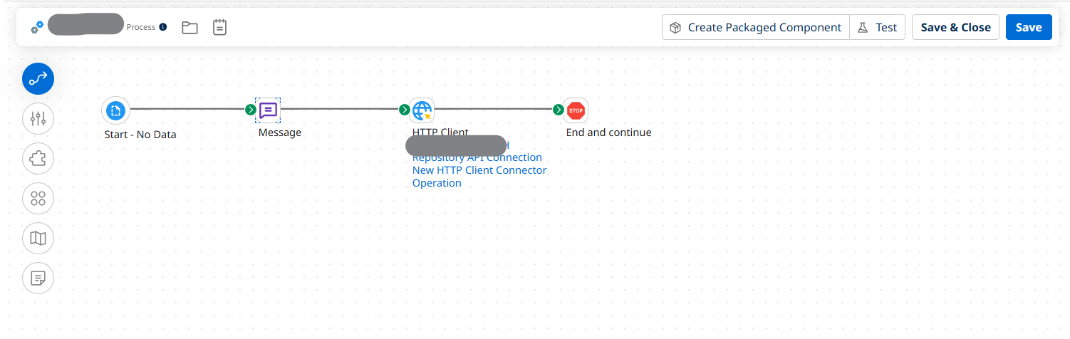 Now Drag and drop HTTP client connector to the process canvas and choose the action as send