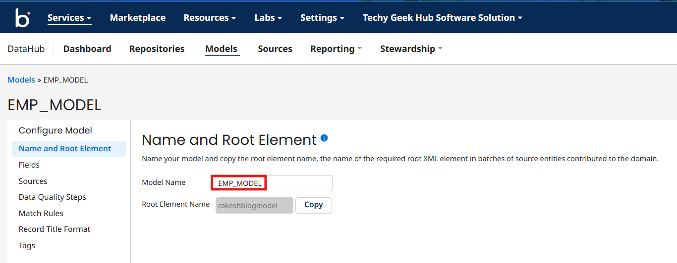 Create a Model with Name EMP_MODEL and source gretyHR
