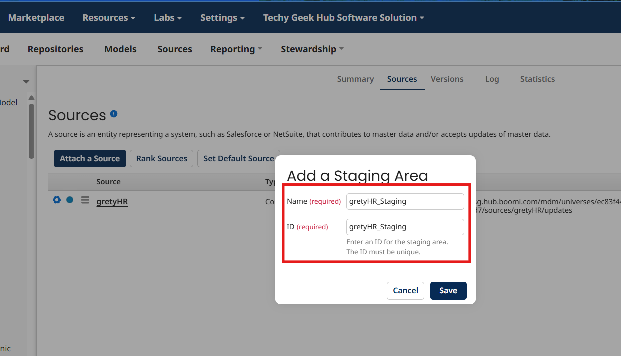 Give name and Id as gretyHR_Staging and click on save