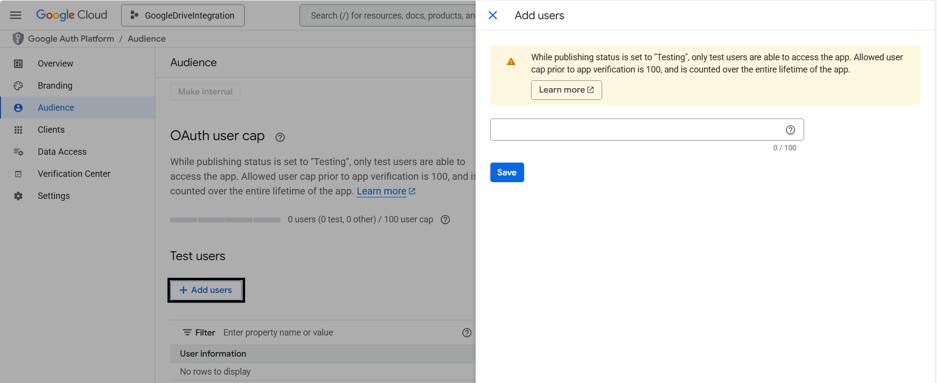 8. Then, navigate to the Audience tab and click Add User to include the desired user.