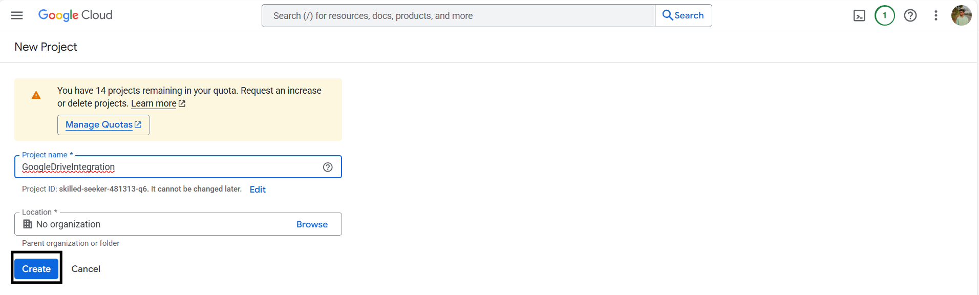 2. Provide a name for the project and click Create to proceed.
