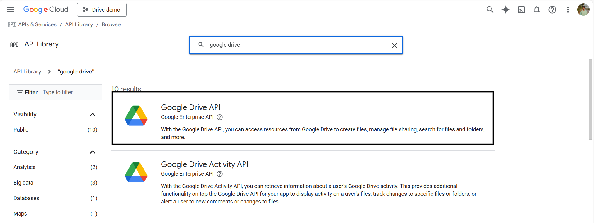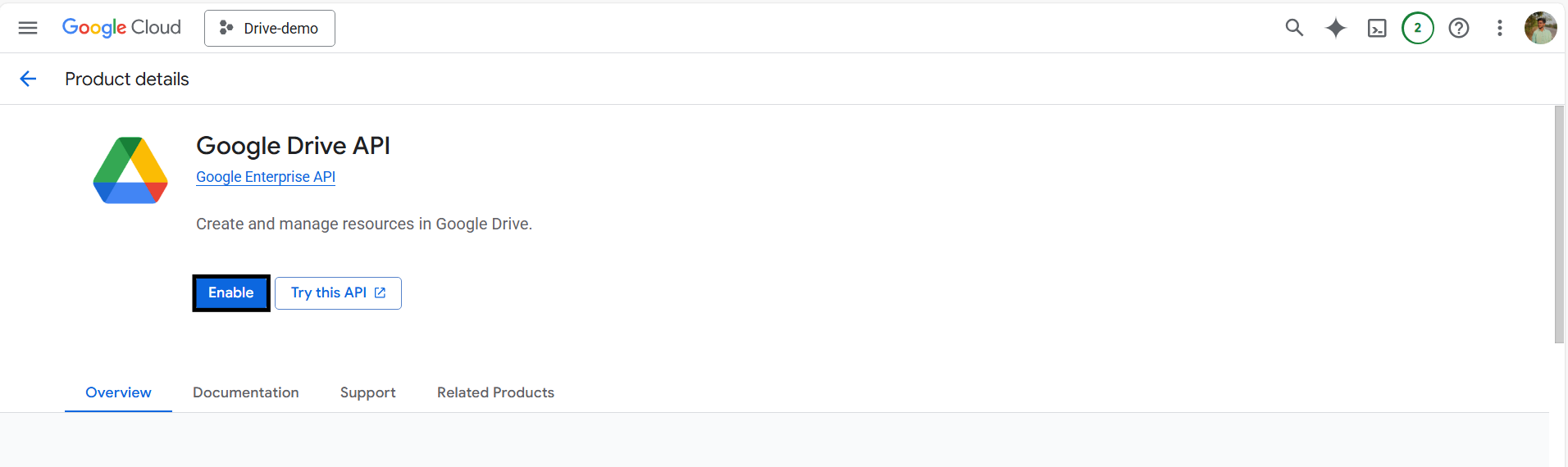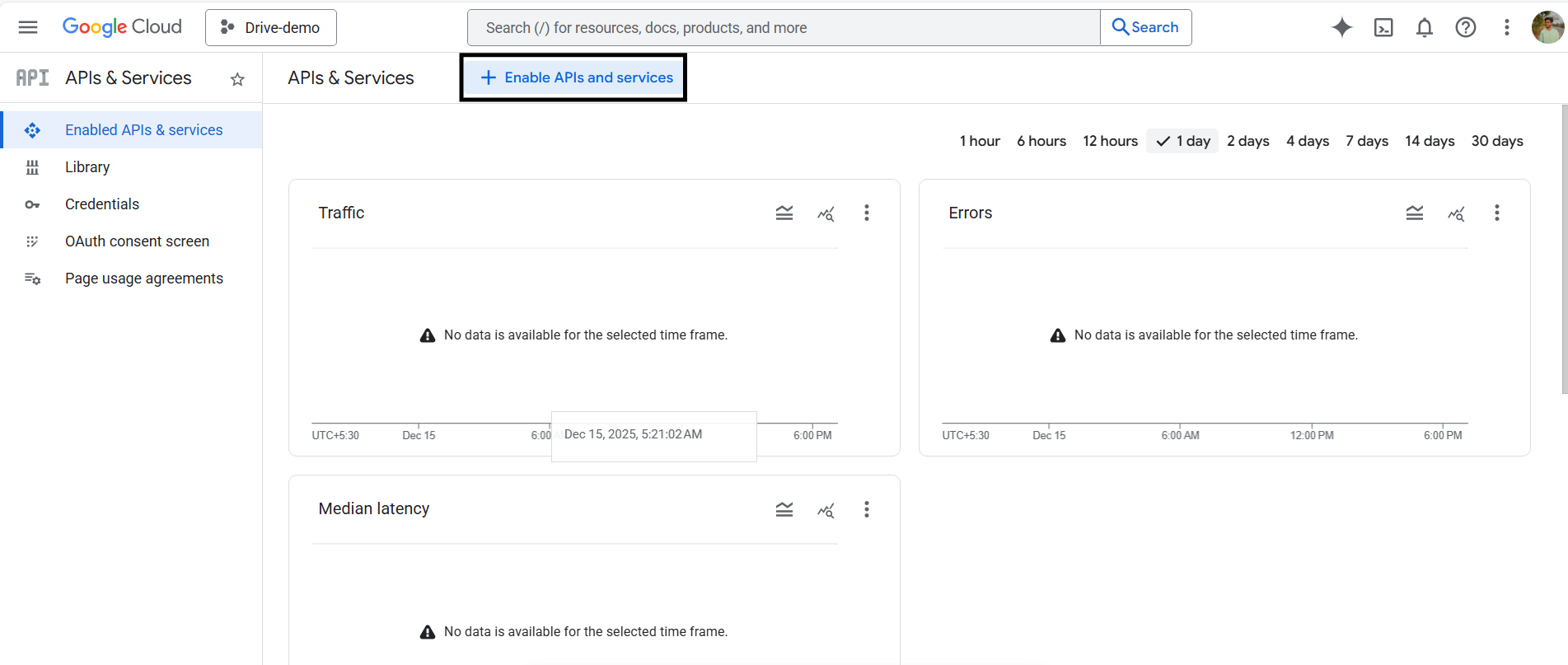 4. Next, click on Enable APIs and Services, then use the search bar to locate Google Drive API, and select it from the results, and enable it.