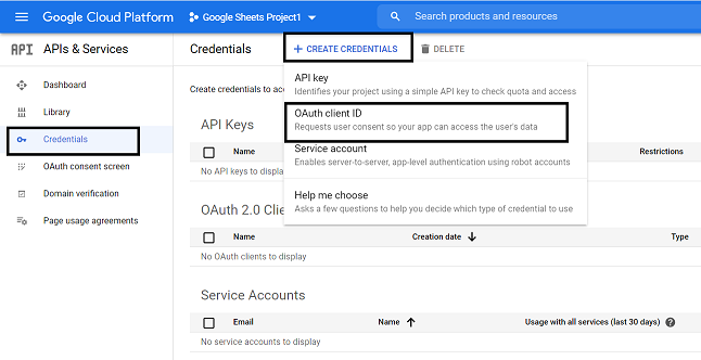 Step 12: Now, click on Credentials and select OAuth Client ID as shown.