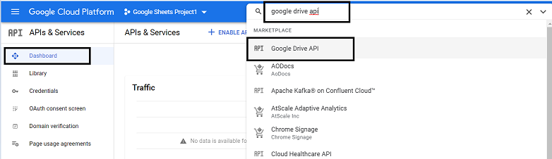 Step 17: Navigate to the dashboard and search for Google Drive API.