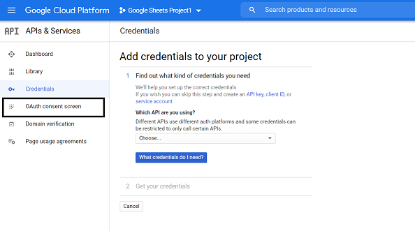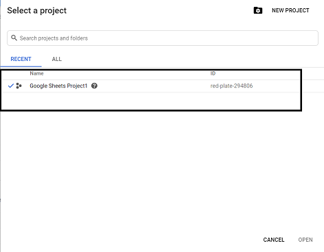 Step 3: We can see that project “Google Sheets Project1” is created. Click on cancel.