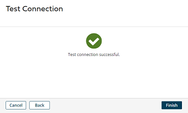 - We see that the Test connection is successful. Click Finish, Save and Close.