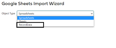 - Select Record Data as Object Type as we are inserting the data into a spreadsheet. Click Next.