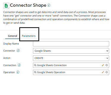 Step 13: Choose Google Sheets Connector and go to the Parameters tab.