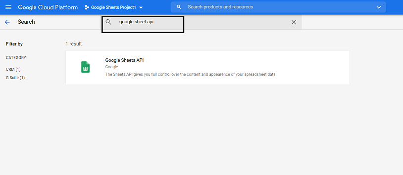 Step 5: Search for the API which we want to enable. Here, it will be Google Sheet API.