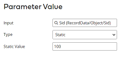 - Choose Input type as Sid, Type as Static and Static Value as 100.