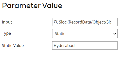 - Choose Input type as Sloc, Type as Static and Static Value as Hyderabad.