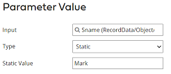 - Choose Input type as Sname, Type as Static and Static Value as Mark.
