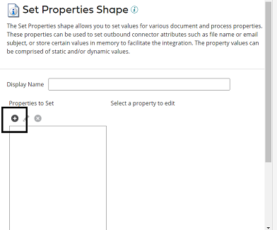 Step 18: Drag and drop set properties to shape onto process canvas to set the file name in disk. Select + on properties.