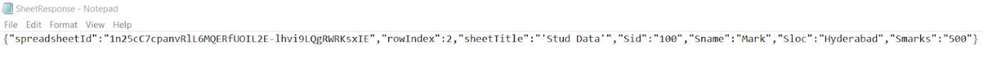 - We have received a file in the disk directory named “SheetResponse.json”.