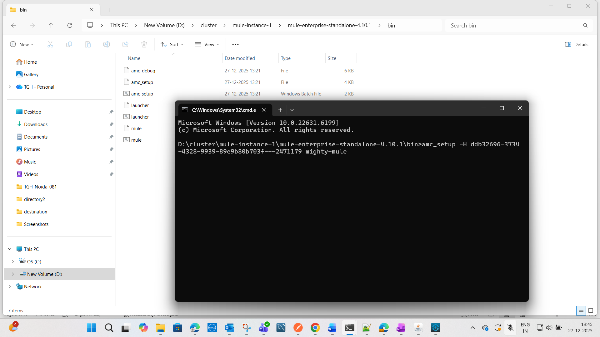 1. Open a command prompt in the bin folder of each Mule Standalone server and run the command mule.bat.