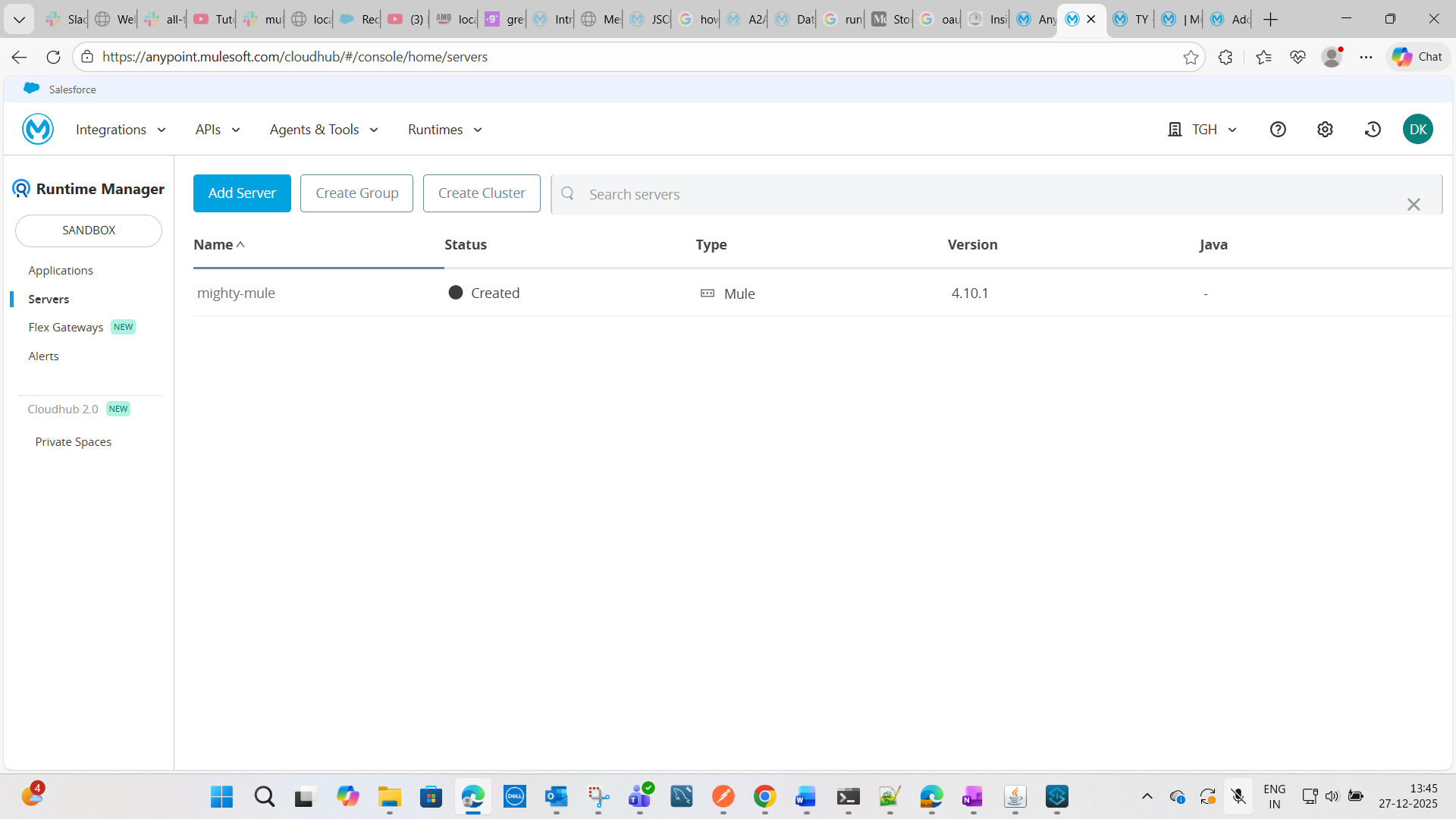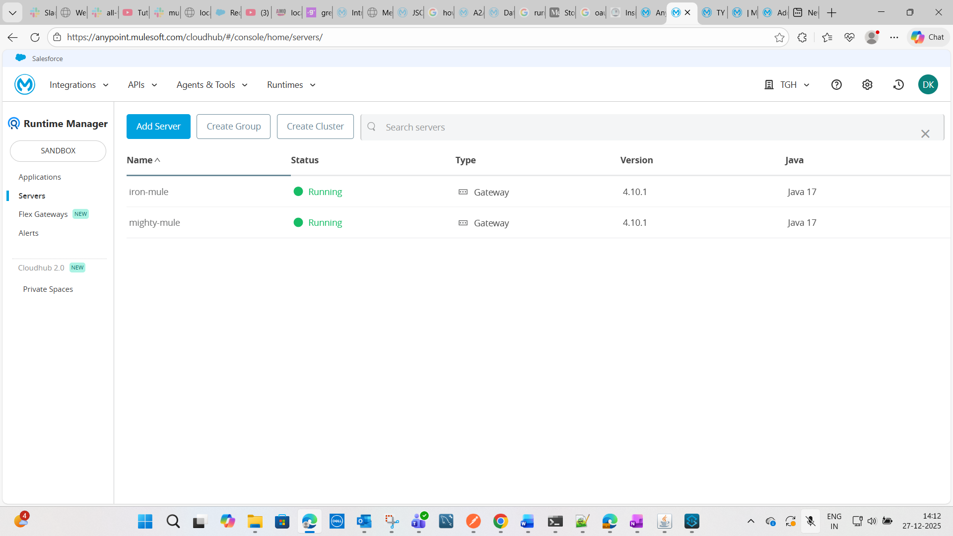 After completing this, both servers will be visible in the Anypoint Platform Runtime Manager, as shown in the image below.