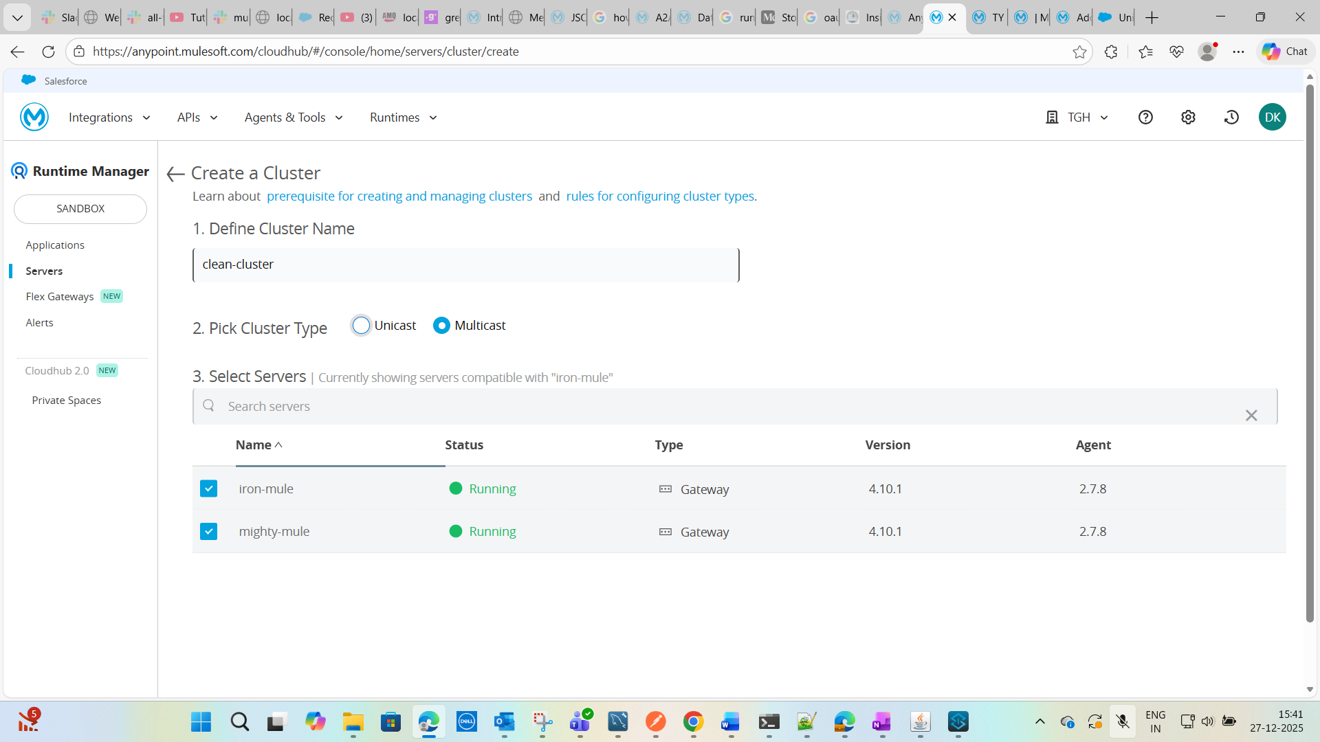 1. To form a new cluster we need to add these two standalone servers into the anypoint platform.