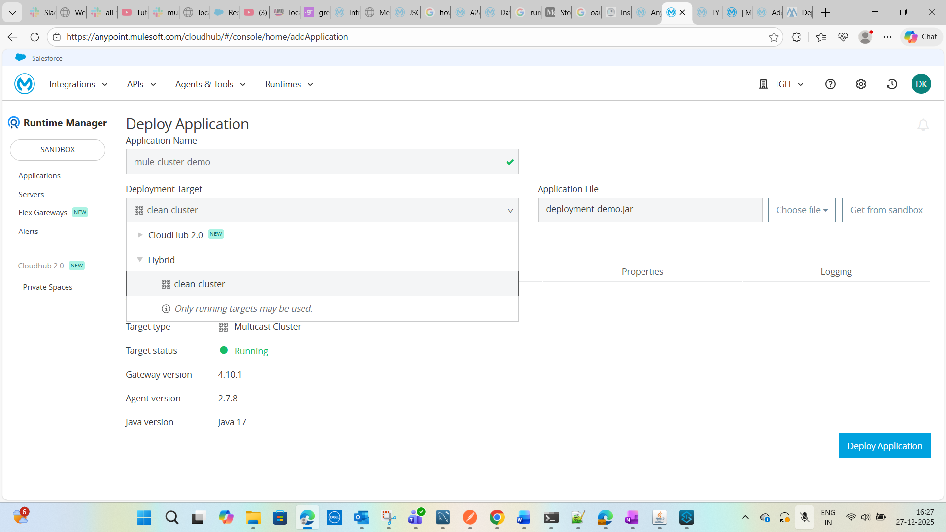 1. Let’s deploy an application on this cluster. For this demonstration, I have created a simple demo Mule application, which we will deploy to the cluster, as shown in the image below