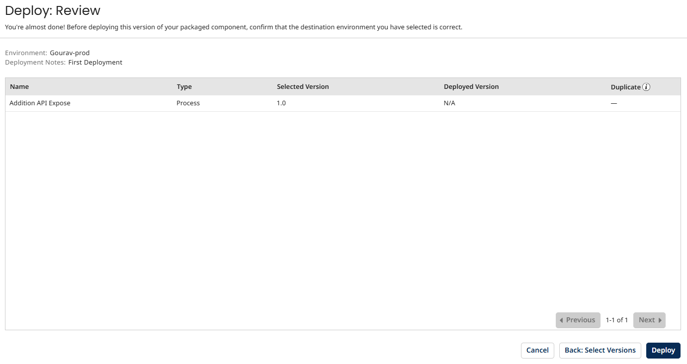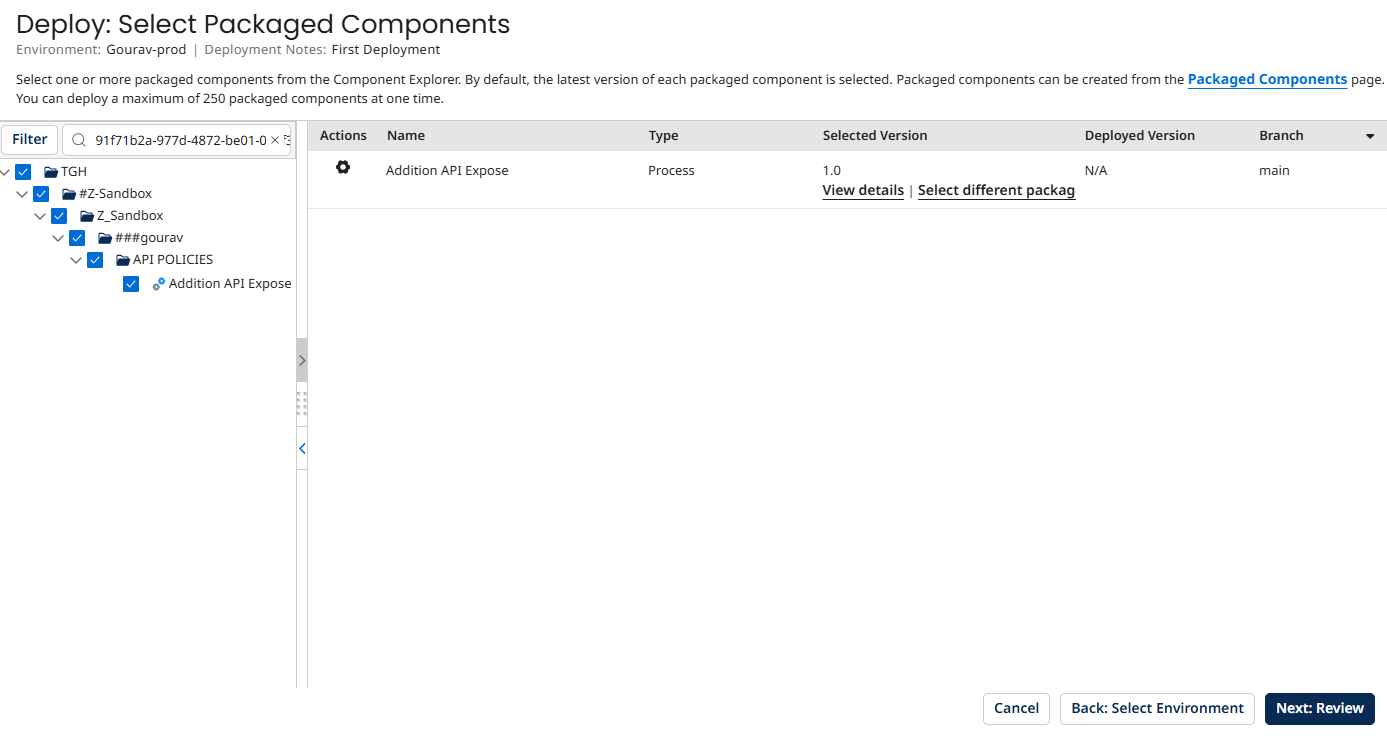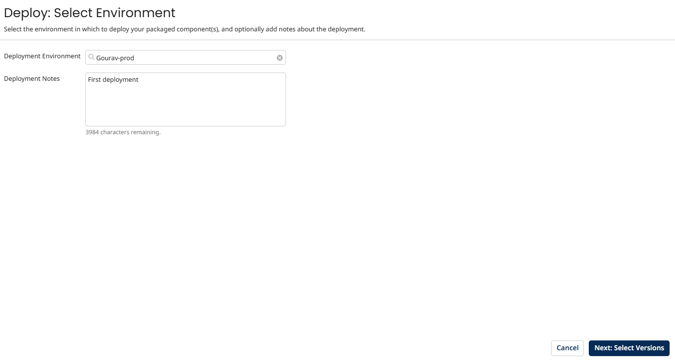 Step 10 – we have to select an environment where our atom is attached and give deployment notes & click on next select version.