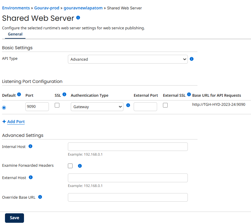 Step 19 – Now for Gateway, we need to make the API type as advanced and the Authentication type as Gateway in the shared web server and click on save & yes, restart plugin.