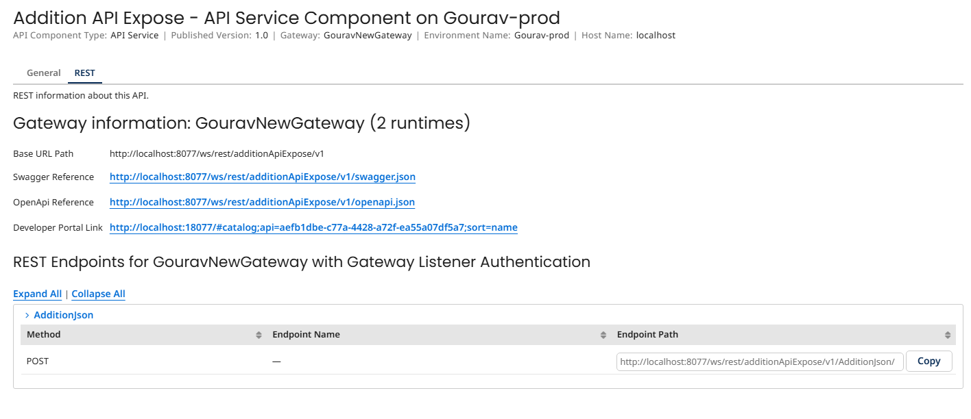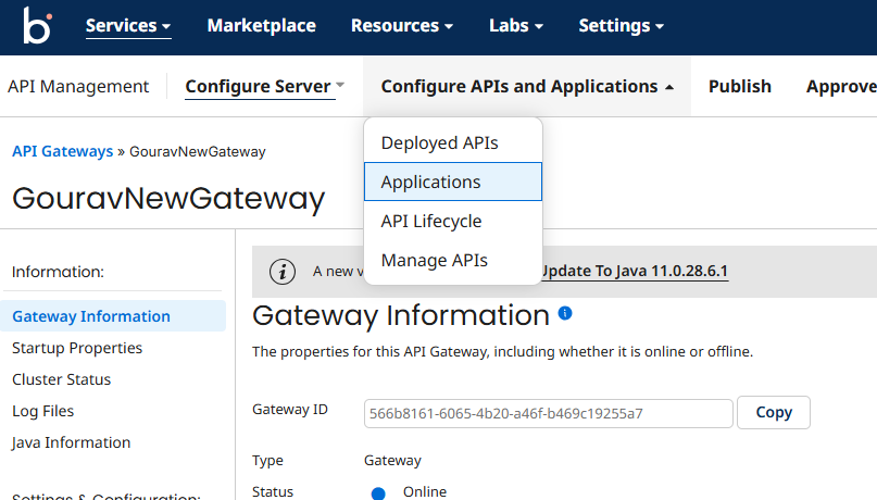 Step 50 – Click on Configure APIs and Applications>Deployed APIs, scroll to the gateway and click on the view hyperlink of our API.