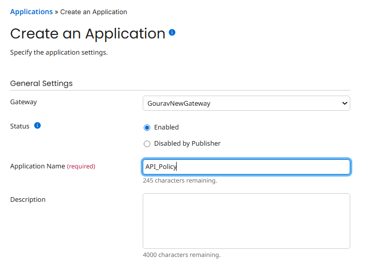 Step 36 – Choose your gateway from the list in the gateway section & give a name to the application and save the application.