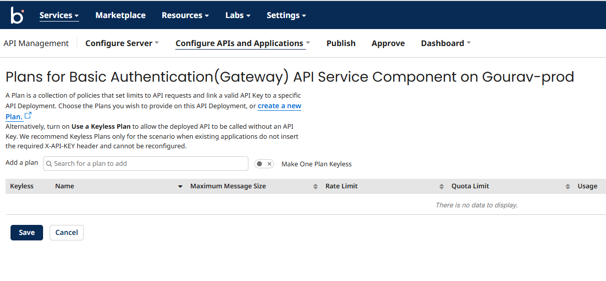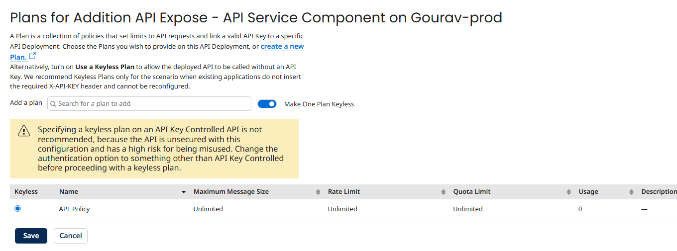 Step 44 – Make the plan keyless so we don’t need the key while consuming, click on save.