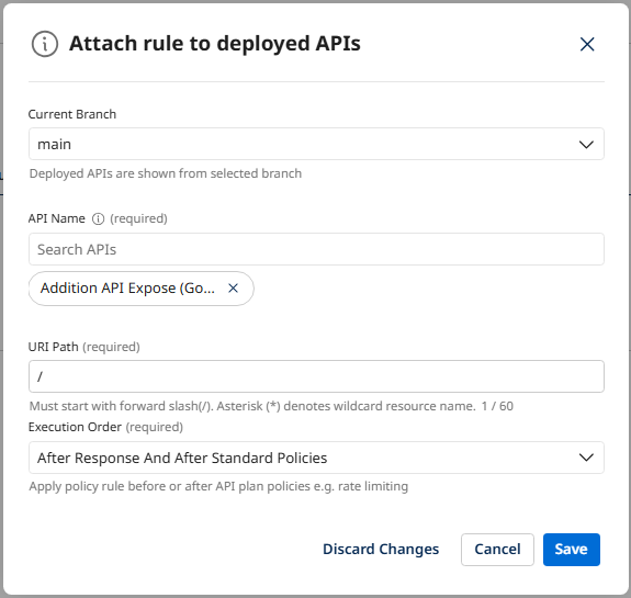 Step 56 – Click on Add to API>Select our API name>and choose before request and before standard policies, then click on save.
